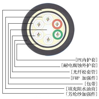 采用改性塑料緊套保護一次涂覆光纖,具有很好的柔軟性,易剝離性,用芳綸紗作為周邊加強件,聚氯乙烯(PVC)作為護套。