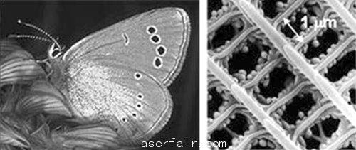 在生物界中,也不乏光子晶體的蹤影。以花間飛舞的蝴蝶為例,其翅膀上的斑斕色彩,其實(shí)是鱗粉上排列整齊的次微米結(jié)構(gòu),選擇性反射日光的結(jié)果。數(shù)年前,科學(xué)家發(fā)現(xiàn)澳洲海老鼠的毛發(fā)也具有六角晶格結(jié)構(gòu),為生物界的光子晶體又添一例。