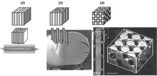 光子晶體是在一維、二維或三維架構(gòu)上具有高度秩序排列的材料,一般所謂的光學(xué)多層膜即是一維架構(gòu)的光子晶體,已被廣泛地應(yīng)用在光學(xué)鏡片上。而具有二維或是三維高度秩序排列的結(jié)構(gòu)則是目前在光子晶體領(lǐng)域中最受到重視的一環(huán)。