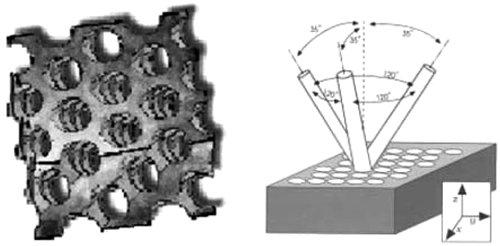 圖5. 第一個(gè)具有絕對(duì)能隙的光子晶體,及其經(jīng)過特別設(shè)計(jì)的製作方式