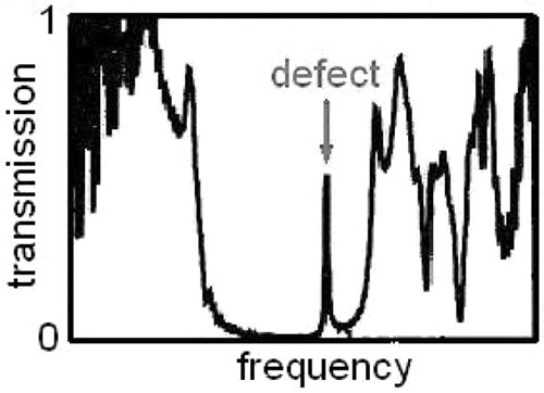 對(duì)于一個(gè)雜質(zhì)態(tài)而言,由于雜質(zhì)四周都是光子晶體形成的“禁區(qū)”,電磁波在空間分布上只能局限在雜質(zhì)附近,因此一個(gè)點(diǎn)狀缺陷(point defect)相當(dāng)于一個(gè)微空腔(micro-cavity)。