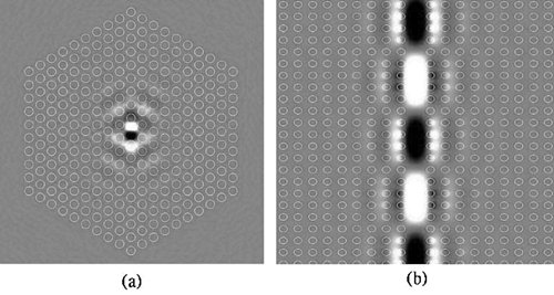 圖10. (a)點(diǎn)缺陷應(yīng)用于共振腔;(b)線缺陷應(yīng)用于波導(dǎo)