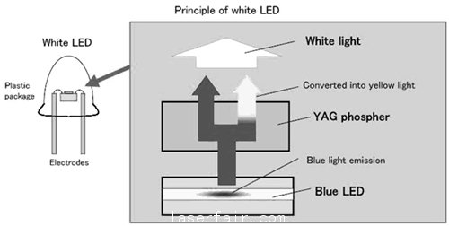圖14. 一般白光LED(藍(lán)光LED+熒光粉)發(fā)光原理