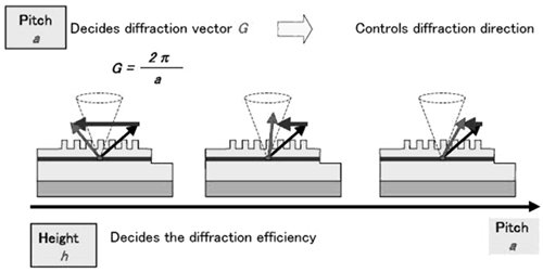 還有一個(gè)要點(diǎn)就是高度,高度跟衍射的效率有相當(dāng)緊密的相關(guān)聯(lián)性,實(shí)際上并不是所有的光都會(huì)受到衍射的影響,受到衍射影響的光都會(huì)跟衍射率產(chǎn)生相關(guān)聯(lián),所以這兩個(gè)重要指標(biāo)就是在開發(fā)光子晶體LED 時(shí),需要計(jì)算出最適當(dāng)數(shù)值的G值,所以在設(shè)計(jì)上就必須經(jīng)過相當(dāng)精密計(jì)算來取得G值,如圖16所示。
