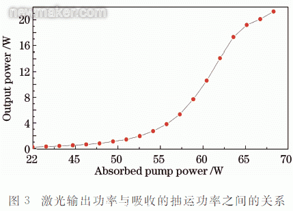 由圖可見,采用888nm抽運方式,增益介質(zhì)中最高溫度為349.5K(等價于808nm抽運方式在抽運功率為32W時的最高溫度),比808nm抽運方式低72.6K,與此同時,晶體內(nèi)部的溫度分布也比較均勻。這就為單端面抽運方式下徑向溫度分布不均勻提供了一種有效的解決方案,從而簡化了以往雙端面抽運的實驗裝置,使單端面抽運方式獲得高功率單頻運轉成為可能。