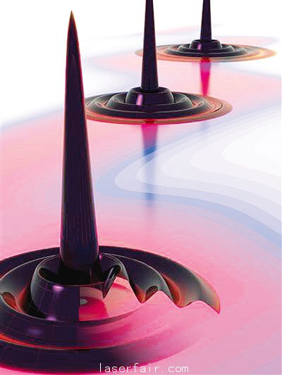 下面的效果圖顯示了顯微鏡下超快紅色激光脈沖在砷化鎵半導體上激起的“量子液滴”。每滴“液滴”中的電子和空穴以液態(tài)模式環(huán)狀排列,其周圍則是等離子體。美國天體物理...