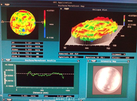 2014年3月25日,中科院長春光機所投資公司奧普光電加工完成BZPMJ700標準平面鏡,面型精度PV為0.187λ、rms為0.018λ、power為0.003λ,這標志著奧普公司在大口徑平面鏡光學加工技術上取得重大突破。