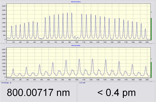 針對極窄線寬可調(diào)諧深紫外激光的應(yīng)用研究任務(wù),中國科學(xué)院物理研究所/北京凝聚態(tài)物理國家實驗室(籌)光物理重點實驗室魏志義研究組基于他們摻鈦藍寶石激光研究的經(jīng)驗,近年來通過深入系統(tǒng)的研究工作,相繼克服了壓縮線寬、穩(wěn)定頻率、精調(diào)波長、提高增益等技術(shù)難題,部分工作已發(fā)表于 appliedoptics等雜志上【appl.opt.,51:1905(2012)及appl.opt.,51:5527(2012)】。最近,魏志義研究員、滕浩副研究員及博士研究生王睿在進一步成功獲得平均功率6.5w、線寬小于0.4pm的可調(diào)諧窄線寬納秒鈦寶石激光的基礎(chǔ)上,通過與福建物質(zhì)結(jié)構(gòu)研究所洪茂椿、陳長章、林文雄研究員合作,利用他們最新研制成功的bbsag(ba1-xb2-y-zo4sixalygaz)晶體四倍頻該激光,在195~205nm的深紫外波長范圍內(nèi)獲得了線寬小于200mhz、單頻穩(wěn)定性優(yōu)于50mhz、調(diào)諧步長小于50mhz的可調(diào)諧窄線寬穩(wěn)頻激光輸出,最高輸出功率達130mw。圖1為波長計測量到的基頻光典型線寬結(jié)果,圖2依次為各階諧波的調(diào)諧曲線,對比bbo晶體,bbsag在紫外波段不僅倍頻效率提高了25%,而且由于近兩倍高的光學(xué)破壞閾值、更高的硬度及完全不潮解的特性,表現(xiàn)出更加優(yōu)良的連續(xù)穩(wěn)定運行時間及可靠的線寬穩(wěn)定性、精確的波長調(diào)諧能力,可望作為一種新的紫外非線性晶體,在激光科學(xué)技術(shù)中發(fā)揮重要作用。目前該激光器已在合作單位取得成功應(yīng)用。