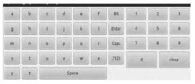 軟鍵盤的實(shí)現(xiàn)是基于信號(hào)與槽機(jī)制。利用Qt的多信號(hào)映射機(jī)制,首先使用QSignalMapper類來捆綁不同按鍵所發(fā)送的一系列無參數(shù)信號(hào), 并將其轉(zhuǎn)化為有參數(shù)的信號(hào),實(shí)現(xiàn)一個(gè)函數(shù)可以響應(yīng)不同按鈕的功能;然后需要建立每一鍵值對(duì)應(yīng)的信號(hào)與槽之間的關(guān)系 connect(ui->pushButton,SIGNAL(clicked()),碼值信號(hào)調(diào)用sendCharacter(QChar)槽, 從而實(shí)現(xiàn)正確的鍵值輸入。界面設(shè)計(jì)如圖2所示。