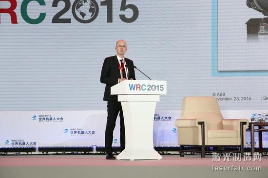 ABB機器人事業(yè)部產(chǎn)品架構(gòu)總監(jiān)DanielW?ppling,報告主題為:工業(yè)機器人:過去、現(xiàn)在與將來,挑戰(zhàn)與機遇。