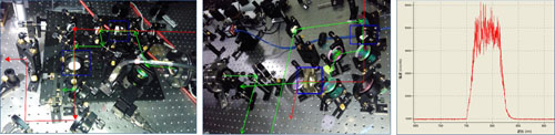整個(gè)壓縮器放置在直徑2.24m,長度4.8m的真空室內(nèi),啁啾脈沖壓縮之后輸出到靶面上的凈脈沖能量大于23J,實(shí)現(xiàn)了1PW的到靶脈沖能量輸出。下一步課題組將對(duì)全系統(tǒng)的光束質(zhì)量、穩(wěn)定性、靶室聚焦單元等做進(jìn)一步的提高和完善,預(yù)計(jì)近期可實(shí)現(xiàn)整個(gè)激光系統(tǒng)數(shù)PW功率的穩(wěn)定運(yùn)行輸出。未來神光II激光裝置將會(huì)逐步發(fā)展成為國內(nèi)高功率激光方面的開放物理實(shí)驗(yàn)平臺(tái),數(shù)PW激光系統(tǒng)建成后,使神光II裝置具有了提供1022-23W/cm2可聚焦峰值功率的輸出能力,不但提升了強(qiáng)場(chǎng)物理實(shí)驗(yàn)方面的能力,同時(shí)配合神光II原來的多種脈寬(1-10ps、35ps、100ps、1ns、3ns和5ns)輸出,也大大提高了神光II激光裝置在物理實(shí)驗(yàn)方面的靈活性和多樣性。