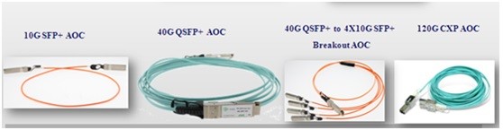 光互連從結(jié)構(gòu)上看有四種實(shí)現(xiàn)形式,1)芯片內(nèi)的互連;2)芯片之間的互連;3)電路板之間的互連;4)通信設(shè)備之間的互連?;诠庖婕夹g(shù)的有源光纜產(chǎn)品是實(shí)現(xiàn)數(shù)據(jù)中心高速光互連的最佳解決方案,是一種芯片間的互連結(jié)構(gòu)。目前市場(chǎng)主流高速光互連AOC產(chǎn)品包括10Gbps SFP+ AOC、40Gbps QSFP+AOC、56G QSFP+AOC 和120Gbps CXP AOC等。