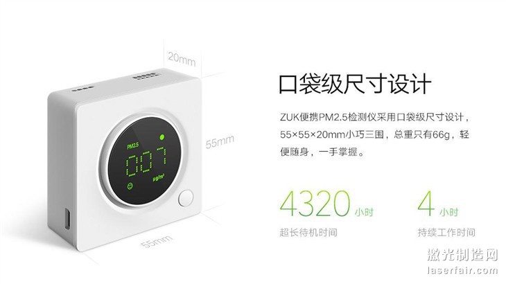 ZUK正式發(fā)布便攜PM2.5檢測儀,并以299元的價格登陸ZUK官方商城。該PM2.5檢測儀采用醫(yī)療級專業(yè)激光顆粒物傳感器,開機3秒即可顯示監(jiān)測數(shù)據(jù),數(shù)據(jù)精準(zhǔn)度高達1微克。