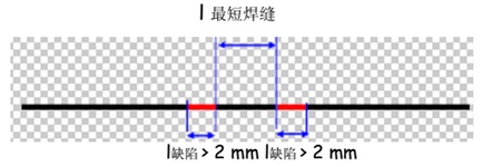 最短焊縫:一條無(wú)焊縫缺陷的焊接部分最小長(zhǎng)度。(所有焊接缺陷部分應(yīng)該無(wú)一個(gè)超過(guò)2mm)。