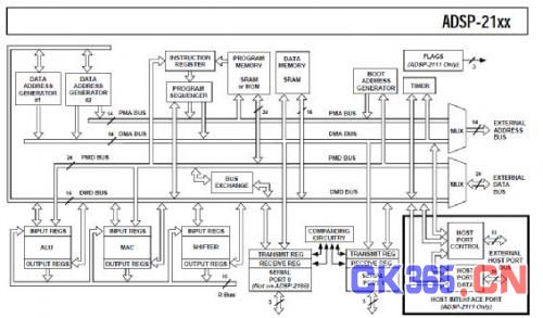 ADI ADSP2100系列是為數(shù)字信號處理和其他高速數(shù)值處理應(yīng)用而優(yōu)化的微處理器,包括以下幾個功能單元:計算單元、數(shù)據(jù)地址發(fā)生器和程序序列發(fā)生器、存儲器、串口、定時器、主機接口、DMA以及模擬接口等。