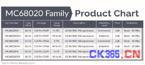 圖示3-大聯(lián)大電商平臺推出的羅徹斯特的Motorola的MC68020家族產(chǎn)品線