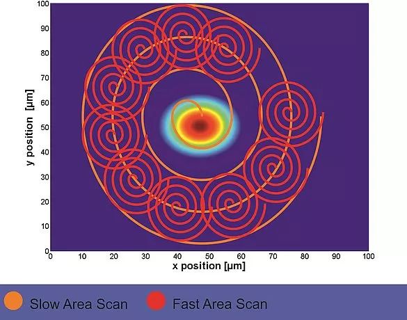獨特之處在于,F(xiàn)MPA的區(qū)域掃描選項包括單頻正弦和螺旋掃描。這些掃描比傳統(tǒng)的光柵或蛇形掃描快得多,因為它們是真正連續(xù)的并且避免了傳統(tǒng)掃描中使用的停止和啟動運(yùn)動的穩(wěn)定要求,而且可以選擇頻率以避免激發(fā)結(jié)構(gòu)共振。另外,還可以選擇恒速螺旋掃描,能夠在螺旋上以恒定密度采集數(shù)據(jù)。