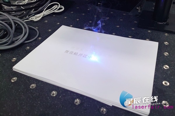 (伴隨著紙張被燒灼的氣味,“雨花經(jīng)開區(qū)中南智能”幾個(gè)大字清晰地躍然紙上,而紙張背面依舊白凈,毫無損傷。)