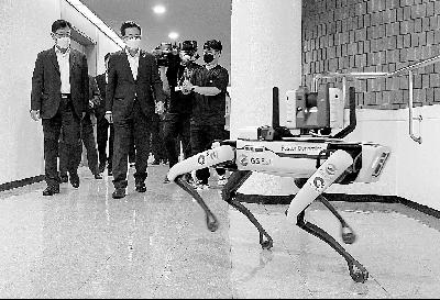 波士頓動(dòng)力公司的機(jī)器狗17日在韓國(guó)仁川市政府做性能展示。