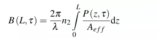 在脈沖光纖激光器中,影響峰值功率最重要的因素是B積分,也就是光纖中的非線性相位偏移量,B積分的定義如下: