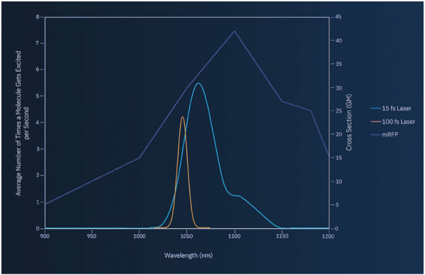FYLA SCH激光波長(藍線)和雙光子成像樣本和激發(fā)波長的關系,SCH覆蓋了絕大多數(shù)波長點,因此優(yōu)于其他單波長激光(紅線和黃線)
