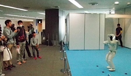 目前,ASIMO已經(jīng)在本月28日正式上崗,每當(dāng)它表演跳躍及踢足球的特技時(shí),圍觀群眾們便會(huì)送上掌聲。這項(xiàng)活動(dòng)將持續(xù)至4月3日。