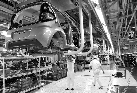 長(zhǎng)安集團(tuán)員工正在組裝汽車(chē)。長(zhǎng)安集團(tuán)將在昆明進(jìn)行汽車(chē)整車(chē)、發(fā)動(dòng)機(jī)研發(fā)制造。 (資料圖片)