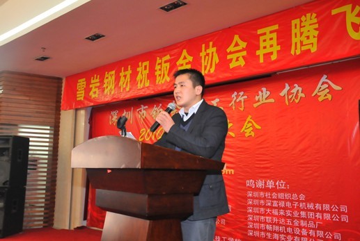 會(huì)議在莊嚴(yán)的國歌聲中拉開帷幕。首先是深圳市鈑金加工行業(yè)協(xié)會(huì)名譽(yù)會(huì)長周長瑚主席、秘書長郭武龍先生和深圳市民政管理局局長葛明給新加入的會(huì)員單位、理事單位及二零一零年度鈑金加工行業(yè)先進(jìn)、優(yōu)秀企業(yè)授牌。會(huì) 上各位領(lǐng)導(dǎo)和專家分別發(fā)表講話,充分肯定我會(huì)成立兩年來所取得的各項(xiàng)成績(jī),并對(duì)協(xié)會(huì)今后的發(fā)展提出了更高的要求。協(xié)會(huì)秘書長郭武龍向大會(huì)作了上年度工作總 結(jié)及2011年工作計(jì)劃報(bào)告。專家委員會(huì)史劍鋒主任就鈑金工種職業(yè)鑒定的進(jìn)展作了報(bào)告。物資調(diào)配中心盧太平與金宇達(dá)總經(jīng)理廖斌圍繞著“資源整合、環(huán)保節(jié) 能、互利共贏”“多元化也是出路”做了主題演講。大會(huì)上深圳市大族激光科技股份有限公司副總經(jīng)理陳燚、廣州雪巖鋼材加工有限公司蘇禮剛以及深圳市寶安任達(dá) 電器實(shí)業(yè)有限公司總經(jīng)理閻生元對(duì)鈑金加工行業(yè)的前景做出了肯定,對(duì)協(xié)會(huì)的快速發(fā)展表示衷心的祝賀同時(shí)也提出了希望與要求。最后,由深圳市鈑金加工行業(yè)協(xié)會(huì)名譽(yù)主席周長瑚先生和葛明先生代表講話,對(duì)協(xié)會(huì)的工作給予高度贊揚(yáng)與支持。