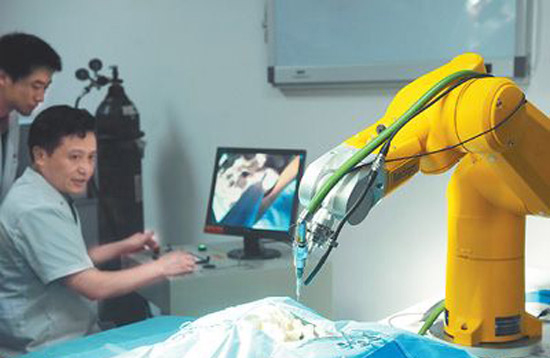由第三軍醫(yī)大學(xué)新橋醫(yī)院與中科院沈陽自動(dòng)化研究所聯(lián)合研發(fā)的、具有完全自主知識(shí)產(chǎn)權(quán)的脊柱微創(chuàng)手術(shù)機(jī)器人在新橋醫(yī)院投入前期臨床試驗(yàn)。據(jù)悉,這是世界首臺(tái)專門用于脊柱微創(chuàng)手術(shù)的機(jī)器人系統(tǒng),同時(shí)標(biāo)志著我國臨床脊柱微創(chuàng)手術(shù)即將步入全新的國產(chǎn)機(jī)器人時(shí)代。