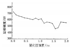 3沿刀尖A向的硬度分布曲線       4 小刃處沿B向的硬度分布曲線