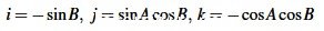 為I、在Y軸的投影為J、在Z 軸的投影為K,A為主擺角,B為副擺角,刀具軸在Z軸上,通過數(shù)學(xué)推導(dǎo)可得出反解模塊的刀軸矢量和A、B的關(guān)系如下(式中i、j、k依次為矢量I、J、K的模,A、B依次為轉(zhuǎn)角A、B的角度值):