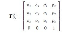 已知機器人末端執(zhí)行器相對于固定參考坐標(biāo)系O-XYZ 的位姿矩陣: