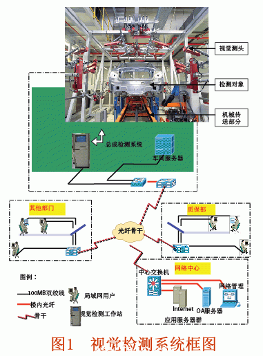 焊接是汽車制造過程中的重要工序之一,具有很高的技術(shù)指標(biāo)要求,因此必須對焊接質(zhì)量進(jìn)行很好地檢測。傳統(tǒng)的檢測方式通常是采用三坐標(biāo)測量機(jī),但這種方式操作復(fù)雜、速度慢、周期長,只能對工件進(jìn)行抽檢。視覺檢測作為一種新型的檢測手段,具有大量程、非接觸、直觀、快速、精度高等優(yōu)點(diǎn),因而可以應(yīng)用于汽車車身的在線檢測,及時(shí)反饋產(chǎn)品的誤差信息,不僅提高了產(chǎn)品的合格率,同時(shí)也為工藝改進(jìn)、減小誤差提供了閉環(huán)反饋的尺寸控制手段,符合現(xiàn)代制造的質(zhì)量工程要求。圖1所示為通用視覺檢測系統(tǒng)框圖,其中視覺測頭即為各種類型的視覺傳感器。