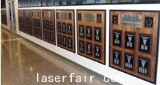 此打標(biāo)項(xiàng)目由一個100W的Synrad CO2激光器、一個FH Flyer打標(biāo)頭和我們的新版WinMark ProV6.0激光打標(biāo)軟件構(gòu)成。為了給8.5" x 11" 的陽極電鍍鋁打標(biāo),F(xiàn)lyer打標(biāo)頭需配備370mm的透鏡以提供540 micron (0.021") 的焦距。每個銘牌的打標(biāo)文件由TrueType®字體的文本和獨(dú)一無二的班徽構(gòu)成,把這些信息都導(dǎo)入到WinMark Pro軟件中作為TIF格式的灰度圖像。文本和班徽由100W、速度為3810厘米每秒(150 in/sec)、安裝有雙向光柵的激光器打出。為了防止過掃描和圖像細(xì)節(jié)的損失,文本和TIF圖像的Filled Text Resolution應(yīng)設(shè)置為476、TextCurve Detail 應(yīng)設(shè)置為952。由于各班的學(xué)員人數(shù)和班徽都不相同,打標(biāo)時間也會隨之變化,最具代表性的是每82平方英寸圖像的打標(biāo)時間是115秒。如上如所示,鋁銘牌上的清晰標(biāo)識是SynradCO2激光器打標(biāo)的典型應(yīng)用。