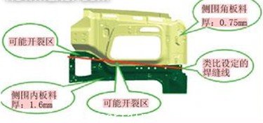 3)焊縫應(yīng)避免穿越產(chǎn)生拉延效果很大的區(qū)域,特別要防止焊縫平行穿越成形#p#分頁標(biāo)題#e#R區(qū)域。