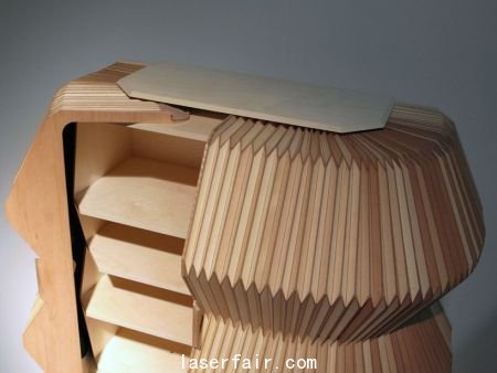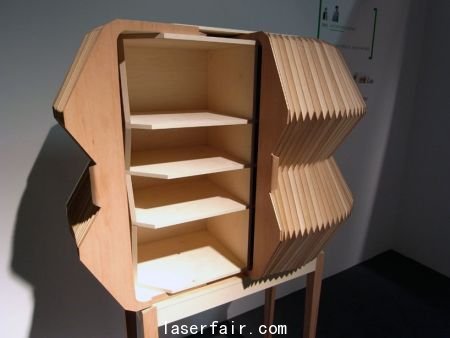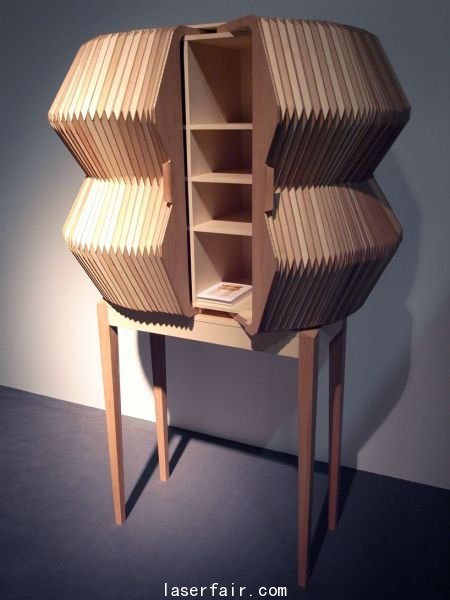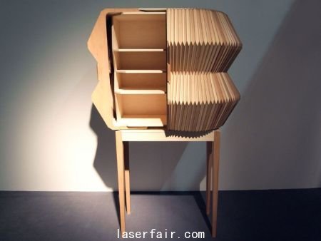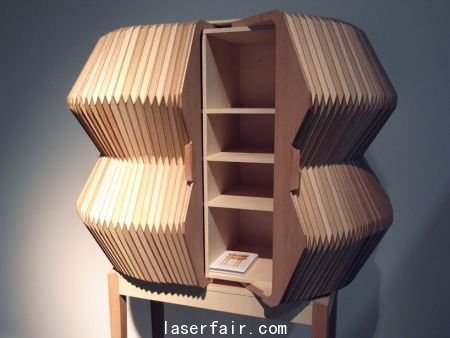 隨著各種制造技術(shù)的發(fā)展,木材的應(yīng)用不再局限于制造硬質(zhì)物品,如桌椅板凳等等。一位德國設(shè)計(jì)師將一種彈性纖維與經(jīng)過激光切割的木頭片巧妙地結(jié)合在一起,制作了這款外形象手風(fēng)琴一樣的書柜。書柜的折疊部分可以自由開合,將木材堅(jiān)硬和柔軟的特點(diǎn)巧妙地結(jié)合在一起,給我們一種全新的視覺感受。