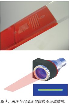 除了與掃描器、高溫計一起應(yīng)用之外,基于激光的塑料焊接還可以充分利用激光的光束整形。在圖3所示設(shè)備中,使用均勻的線形激光源焊接微通道結(jié)構(gòu),類似于生物芯片應(yīng)用。由于光束的均勻水平達到了95%,因此,焊接也十分均勻——即使在較大的面積上。光纖耦合半導(dǎo)體激光系統(tǒng)提供此類均勻光束,并可量身定制,以適合于各種幾何形狀。對于尺寸達600毫米的極大均勻激光光束,可以由非光纖耦合的直接光束半導(dǎo)體激光模塊來實現(xiàn)。