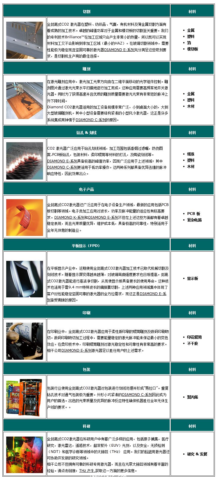 切割 材料 全封離式CO2 激光器在塑料、紡織品、氣囊,有機材料及薄金屬切割方面有著成熟的加工技術。卓越的峰值功率對于金屬和模切板的切割至關重要。我們的專利技術Bri...