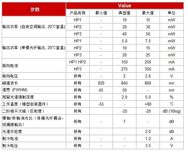 產品名稱: SLD 37-HP高功率SLD模塊(800-870nm) 產品特點: 可以高達25mW單模光纖輸出功率 非常寬的光譜范圍 光譜平坦,極低的殘留FP調制深度 低相干長度 應用領域: 光纖...