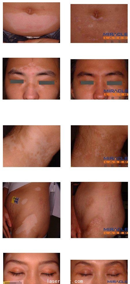 最先進的皮膚科激光治療技術——Xtrac準分子激光技術,其單一的308nm波長被認為是紫外光治療白癜風和銀屑病的最佳波長,研究表明準分子激光比傳統(tǒng)的療法能更好的誘導T細胞凋亡,并促進色素的合成。