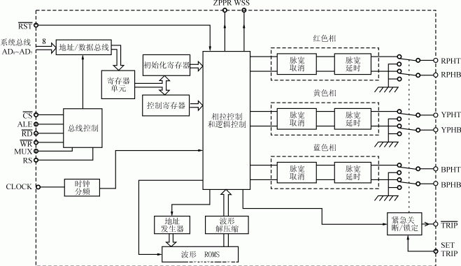 更重要的是,在系統(tǒng)異常情況(過流或過壓)下,一個緊急關(guān)斷輸入(SETTRIP)能不受微處理器的控制而迅速關(guān)斷所有的PWM輸出,這很好地解決了變頻器的快速保護(hù),避免了因CPU中斷服務(wù)指令周期所造成的延誤。