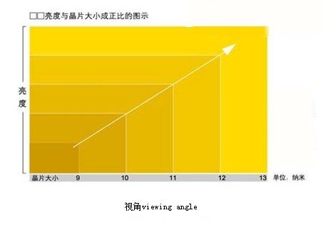 LED顯示屏在法線方向的平均亮度。單位:cd/m2。 在同等點密度下,LED顯示屏的亮度取決于所采用的LED晶片的材質(zhì)、封裝形式和尺寸大小,晶片越大,亮度越高;反之,亮度越低。  亮度與晶片大小成正比的圖示 。