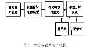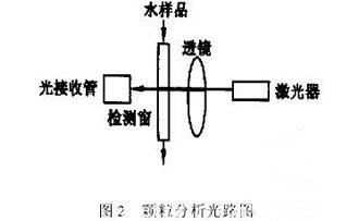 實(shí)驗(yàn)裝置的工作過(guò)程是:激光器發(fā)出的激光束經(jīng)過(guò)透鏡聚焦,其聚焦點(diǎn)正好落在檢測(cè)窗內(nèi)。取樣裝置使水樣品通過(guò)檢測(cè)窗口,當(dāng)水中的泥沙顆粒經(jīng)過(guò)激光聚焦點(diǎn)時(shí),光路、泥沙、顆粒在一條直線上。由于顆粒的粒徑不同,其擋光的程度也不同,接收管接收到的信號(hào)強(qiáng)度也不同。接收到的信號(hào)經(jīng)過(guò)放大,進(jìn)入多道分析系統(tǒng),由該系統(tǒng)分辨出不同的顆粒粒徑范圍內(nèi)的顆粒數(shù)量,由顯示器和記錄儀分別顯示和記錄。