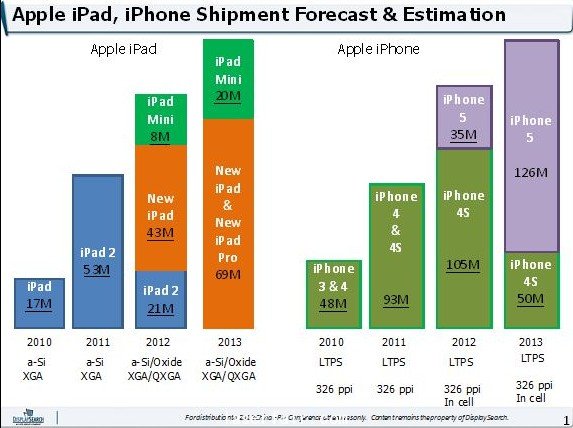 蘋果原先計(jì)劃在new iPad上市后停止iPad2這個(gè)產(chǎn)品線,但是現(xiàn)在看起來iPad2的生產(chǎn)應(yīng)該會(huì)維持到年底。新一代的iPad(new iPad)再一次的以其超高分辨率的畫質(zhì)(9.7”QXGA,200+ppi)和高色彩飽度領(lǐng)先整個(gè)平板計(jì)算機(jī)市場(chǎng)。不過蘋果公司也還在與面板供應(yīng)鏈討論如何革新液晶面板,像是改變LED背光設(shè)計(jì)以降低成本、減少散熱問題、改變部材以減輕重量、以及改進(jìn)面板穿透率以減少電力消耗等等。