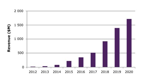 有機發(fā)光二極管(OLED)在2009年僅有5億美元市場規(guī)模,但后續(xù)幾年卻不斷吸引廠商投入資金發(fā)展,著實耐人尋味。事實上,OLED之所以掀起開發(fā)熱潮,部分原因是可用在手機屏幕上,如三星(Samsung)Galaxy系列產(chǎn)品;手機屏幕的導入助長OLED營收于2011年攀升至30億美元,并于2012年達到60億美元。