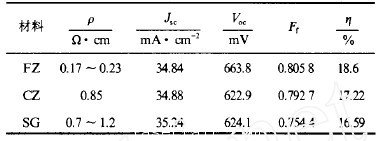 在優(yōu)化工藝的基礎(chǔ)上,我們以太陽能級硅材料得到了轉(zhuǎn)換效率為 16.59% (VOC=624.1 mV,JSC=35.24 mA/cm2 Ff =0.7544)的大面積(25.25cm2 ) 太陽電池,其一致性、重復(fù)性較好.下表比較了采用不同材料的電池性能。