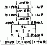 進行三維激光加工離不開計算機程序,編制激光加工的計算機程序主要有示教編程和自動編程兩種方式。由于手工示教編程是一項勞動強度大,效率低的工作,采用自動編程則是三維激光加工的必然趨勢。自動編程是建立在CAD平臺上的CAM系統(tǒng),這就必須與CAD/CAM技術(shù)相連接,以便實現(xiàn)加工各種復雜幾何形狀的自動化過程,其中需采用許多先進技術(shù),如產(chǎn)品設(shè)計與工藝過程設(shè)計的專家數(shù)據(jù)庫等,采用CAD/CAM技術(shù)的激光加工過程如圖產(chǎn)品的幾何形狀通過數(shù)字化顯示終端反饋到CAD/CAM系統(tǒng),或全部過程由圖象掃描器自動完成,掃描系統(tǒng)以具有2048象元和5灰度的CCD線性攝像機為基礎(chǔ),高速的圖像處理器將幾何圖像的象元轉(zhuǎn)換成CAD系統(tǒng)所用的曲線形式。用戶可在CAD終端檢查所掃描的幾何圖形,圖形的周長和面積可自動地計算,系統(tǒng)利用這兩個值,對用戶提供的繪圖進行快速拷貝,然后由計算機專家數(shù)據(jù)庫產(chǎn)生出生產(chǎn)過程(CAPP)文件,最后進行NC編程,將生產(chǎn)過程文件變成控制信息,如加工參數(shù)、切割路線等。最后根據(jù)材料的選擇,加工可在系統(tǒng)上完成。與其他加工類型的FMS相比,激光柔性加工系統(tǒng)的材料傳輸需有其獨特之處。