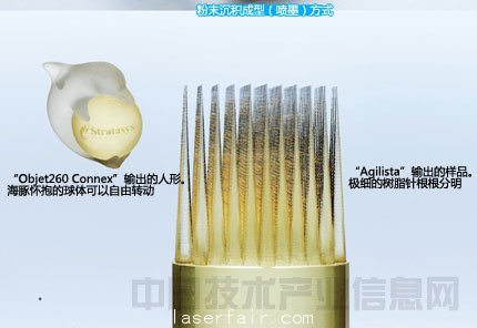 除此之外,3D打印機還有使用光固化樹脂作為材料的光固化快速成型等若干方式,但大多數(shù)方式只能對樹脂進行成型。能夠使用其他材料,拓展3D打印機可能性的方式,是“粉末沉積成型(噴墨)方式”。