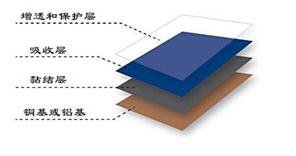 平板太陽能集熱器的集熱技術主要體現(xiàn)在太陽能選擇性涂層。由于技術工藝不同,不同涂層的吸收率、發(fā)射率及使用壽命也不同。