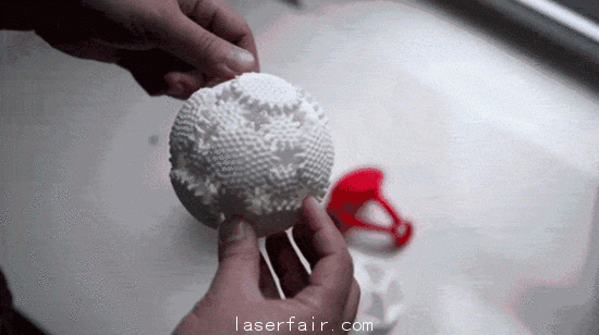 Mechaneu一號是由一次成型的工藝制造出來的,其最大的特點就是內部互鎖支撐網絡十分復雜。只要轉動套件中的一個齒輪,整個齒輪球都會開始轉動。協(xié)同轉動給人以視覺上的沖擊和觸覺上的奇特感受,令人著迷。Mechaneu是一項探索3D打印在藝術上應用之極限的項目,項目中所有的元素都將以盡可能少的組件帶來最多的細節(jié)和信息。
